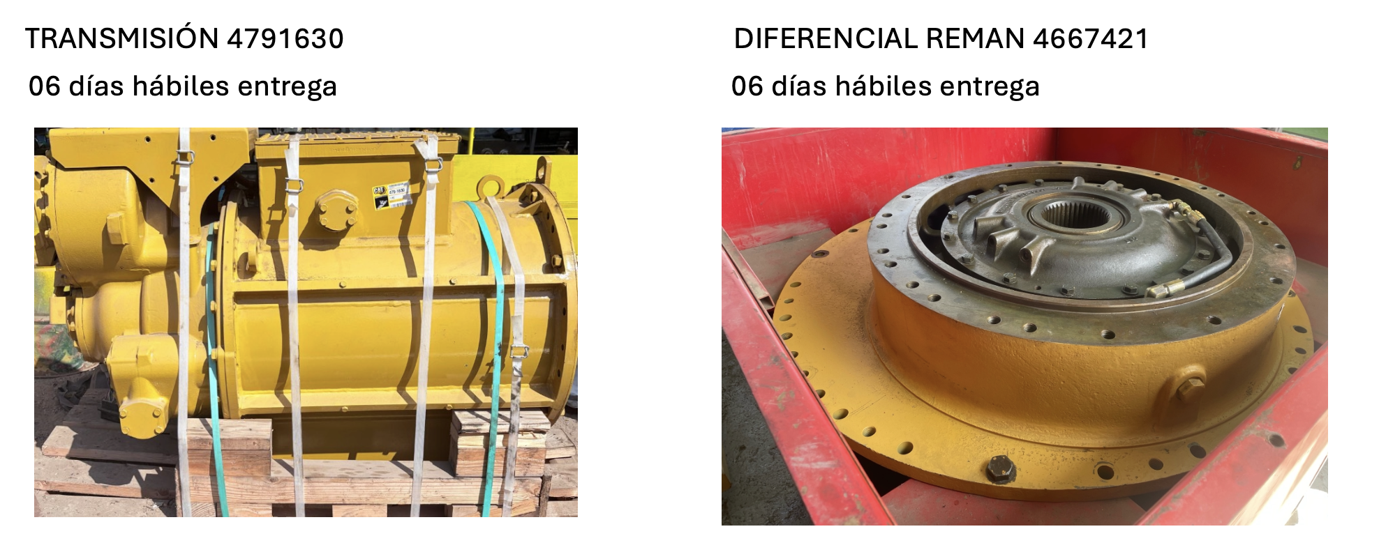 La compañía provee motores diésel, transmisiones, mandos finales, diferenciales y repuestos, asegurando disponibilidad, confiabilidad y respuesta rápida para equipos de carguío, transporte y perforación.